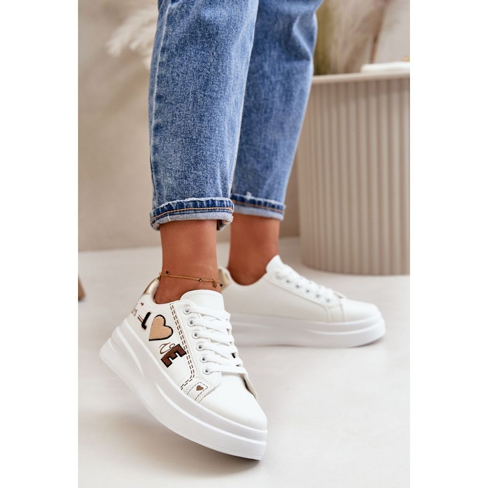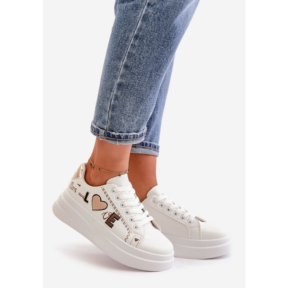 Szczegóły: Sneakersy Damskie Na Platformie Z Ozdobnym Napisem Love Białe Orlian