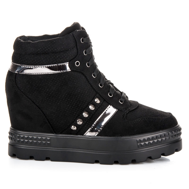 Wykonane z ekologicznej skóry, sneakersy nie tylko prezentują się wyjątkowo, ale również są przyjazne dla środowiska. Okrągły nosek oraz sznurowane zapięcie zapewniają wygodę użytkowania oraz doskonałe dopasowanie do stopy. Wysoka platforma o wysokości 10 cm dodaje dodatkowego „kopa” i sprawia, że każda stylizacja nabiera charakteru.