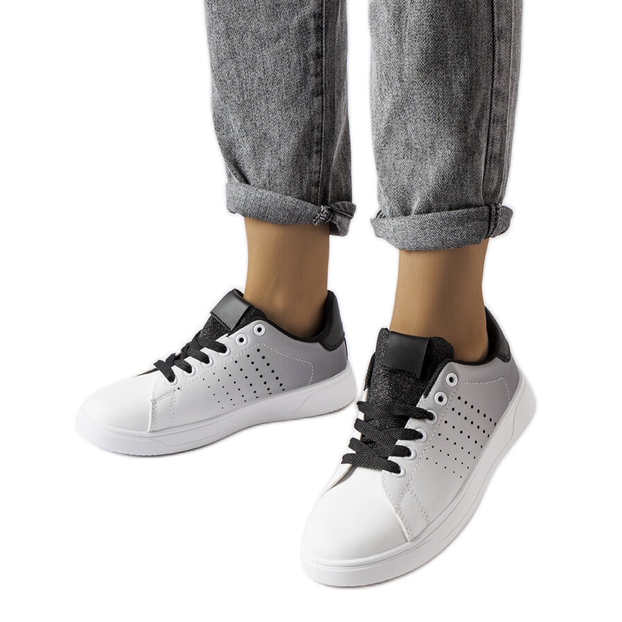 Stylowe sneakersy Gordon (model KK-362) z subtelnym efektem ombre łączą klasyczny biały kolor z akcentami czerni. Wykonane ze skóry ekologicznej, na gumowej podeszwie, sprawdzą się jako wygodne, miejskie obuwie na co dzień.