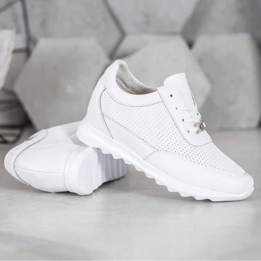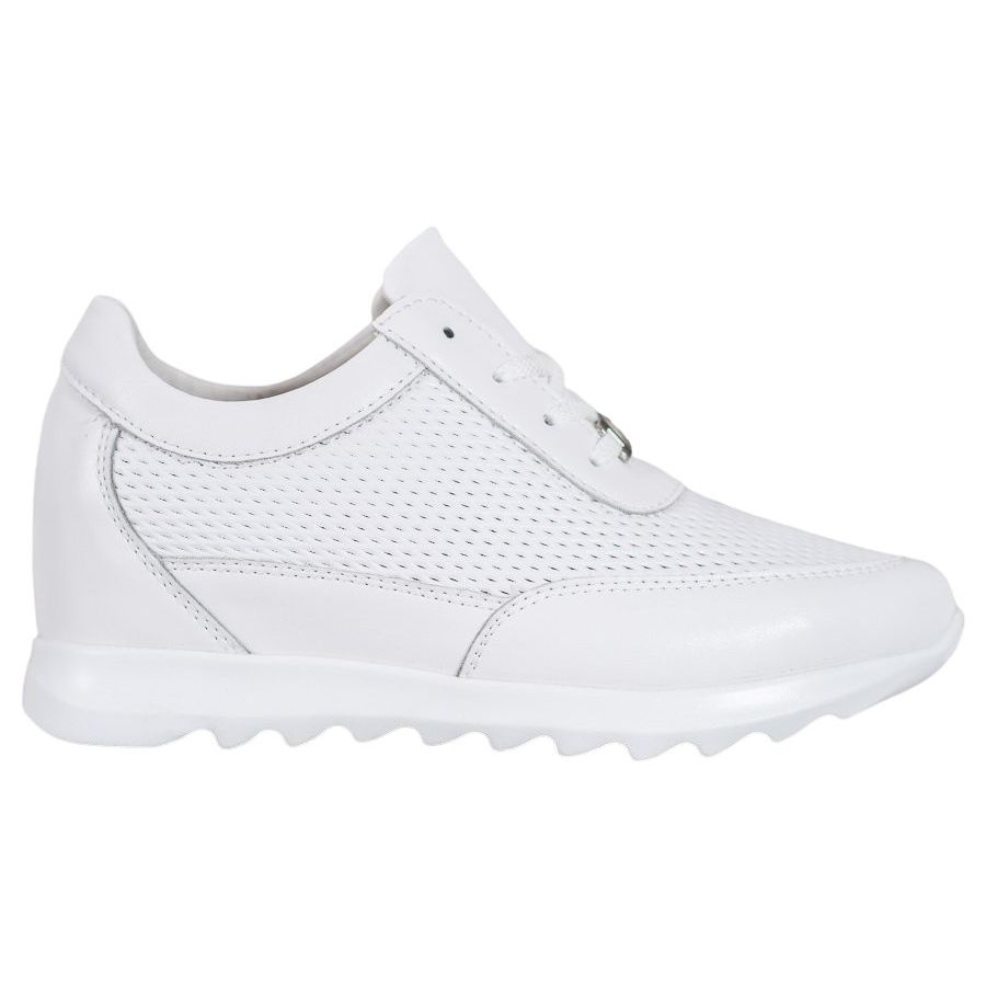 Sneakersy Vinceza wyróżniają się ukrytą koturną o wysokości 5 cm, dzięki czemu zyskujesz dodatkowe centymetry wysokości, jednocześnie ciesząc się wygodą. Ich uniwersalny biały kolor doskonale komponuje się z jeansami, ale także elegancką spódnicą, co czyni je wszechstronnym dodatkiem w każdej garderobie.