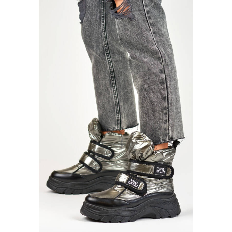 Szczegóły: Śniegowce damskie metaliczne botki na rzep srebrne 22-PY16062SI czarne