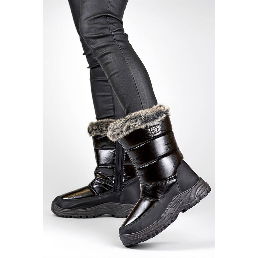 Inna marka Śniegowce damskie z futerkiem na suwak czarne N1612B