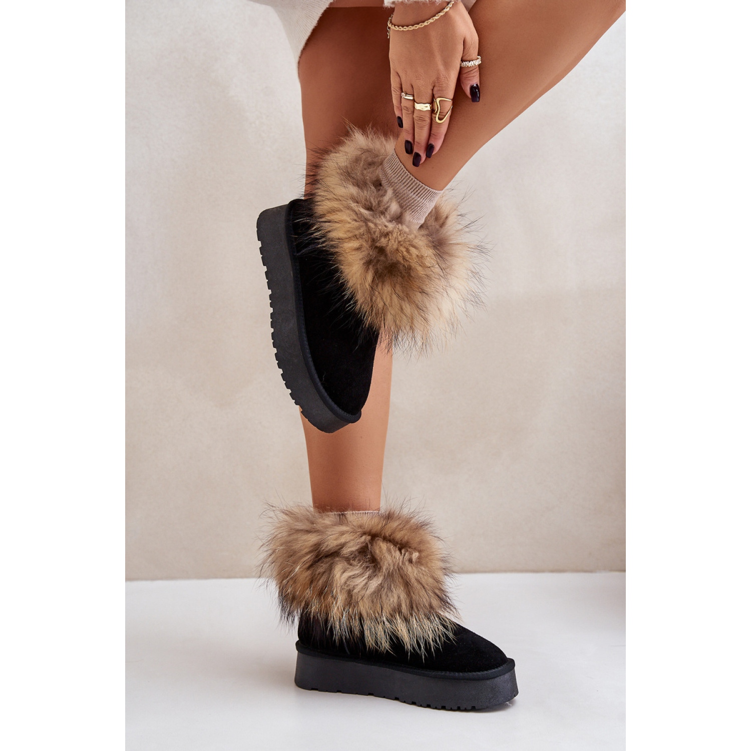 Górna część cholewki zdobiona jest puszystym futerkiem, które dodaje im nie tylko uroku, ale także dodatkowego ciepła, co czyni je niezastąpionym elementem zimowej garderoby. Śniegowce osadzone są na stabilnej platformie o wysokości 3.5 cm, co sprawia, że są wygodne nawet podczas dłuższych spacerów.