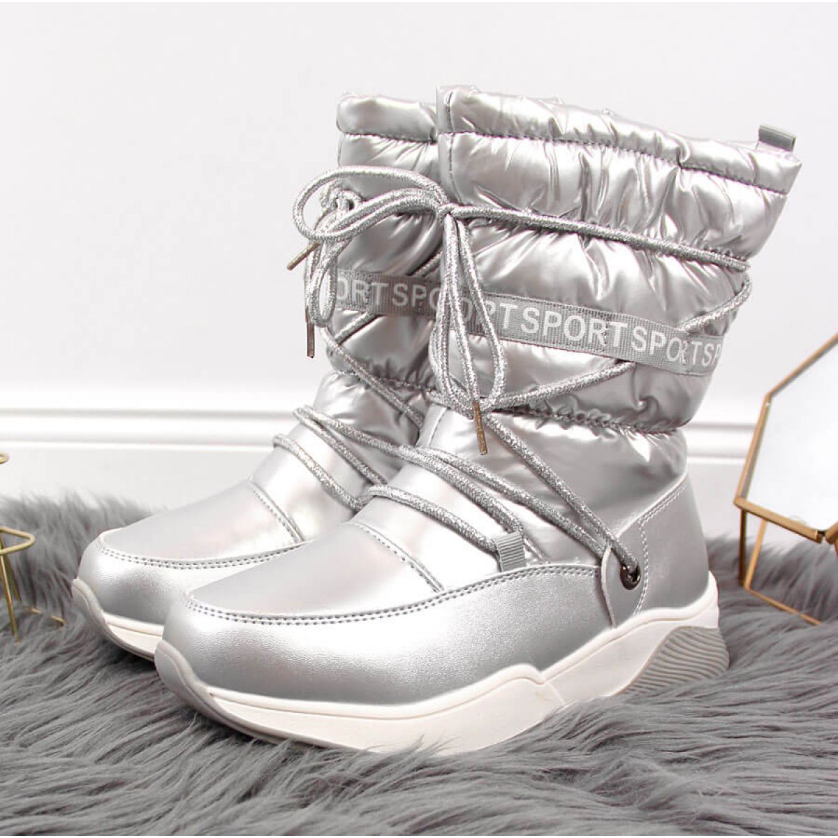 Szczegóły: Śniegowce wodoodporne Jr EVE324B srebrne białe