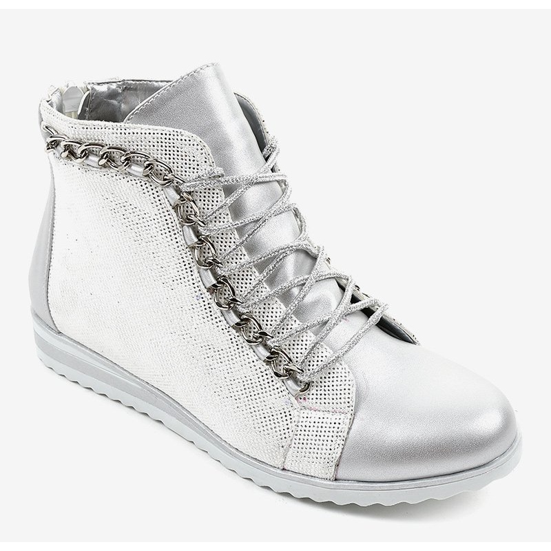 Szczegóły: Srebrne botki sznurowane z suwakiem TL-21 szare
