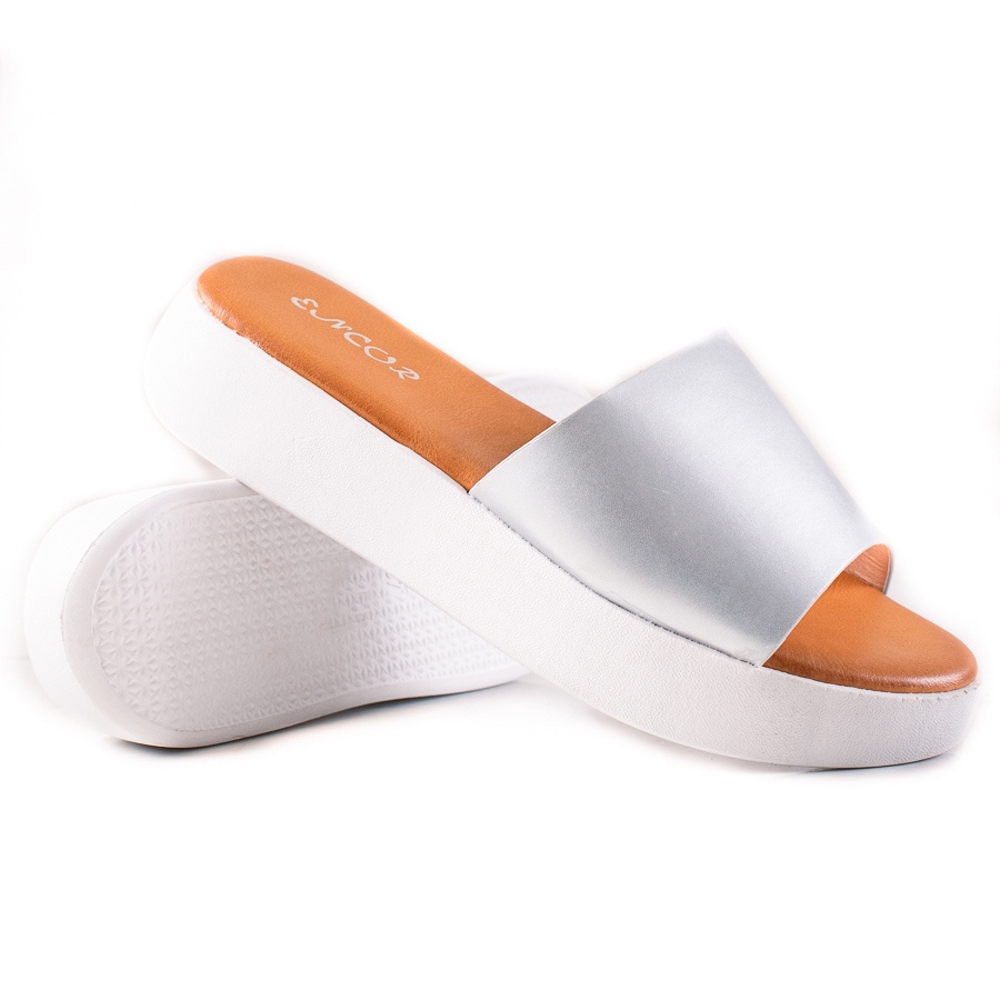 Encor Encor Srebrne Klapki Na Platformie srebrny