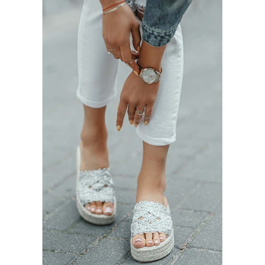 Odkryj wyjątkowe klapki na platformie Sudden Draft, które łączą w sobie komfort i modny design! Te piękne srebrne klapeczki wyróżniają się wyrafinowanym wykończeniem plecionym sznurkiem, co nadaje im niepowtarzalnego charakteru. Pasek w modelu Sudden Draft jest jednocześnie subtelny i zjawiskowy – idealny dla kobiet, które cenią sobie elegancję w codziennym wydaniu.