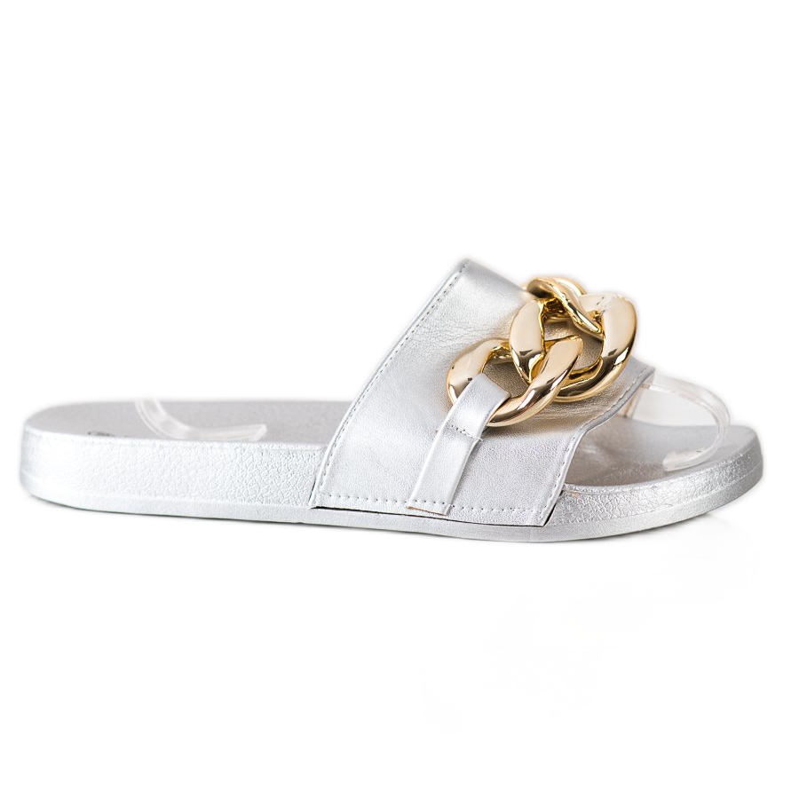 SHELOVET SHELOVET Srebrne Klapki Z Ozdobą srebrny