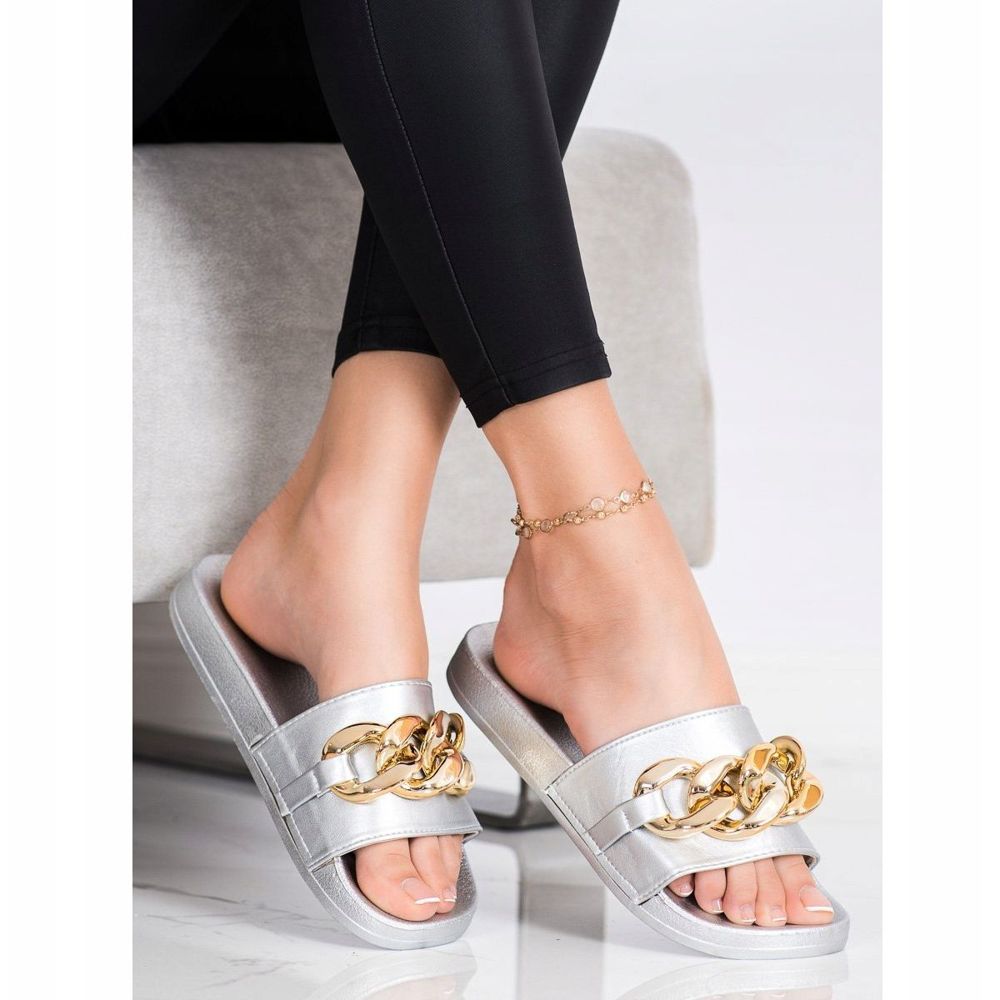 Szczegóły: SHELOVET Srebrne Klapki Z Ozdobą srebrny