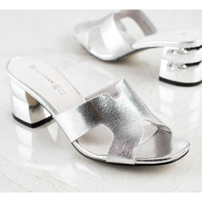 Goodin Goodin Srebrne Klapki Z Ozdobnym Obcasem srebrny