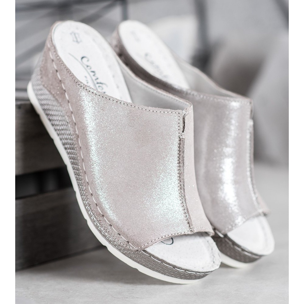 Szczegóły: Filippo Srebrne Klapki Ze Skóry szare