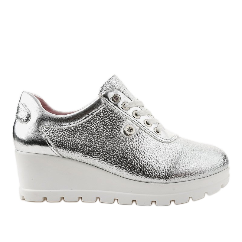 Szczegóły: Srebrne Modne Sneakersy na koturnie JFL662-2 szare