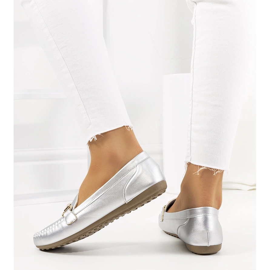 Srebrne mokasyny damskie Ilana — elegancja i wygoda na co dzień