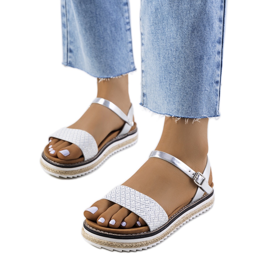 Przedstawiamy srebrne sandały na zdobionej platformie Acton – absolutny hit tego sezonu! Te wyjątkowe sandały łączą w sobie elegancję i styl, a ich wysoka podeszwa oraz bogate zdobienie przyciągają uwagę. Inspiracja espadrylami sprawia, że idealnie dopełnią każdą letnią stylizację, dodając jej lekkości i wyjątkowego charakteru.