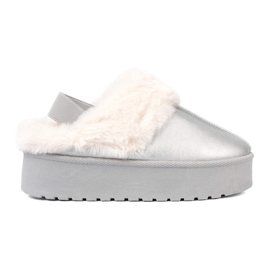 Shelvt Shelvt Srebrne śniegowce z futerkiem i platformą srebrny