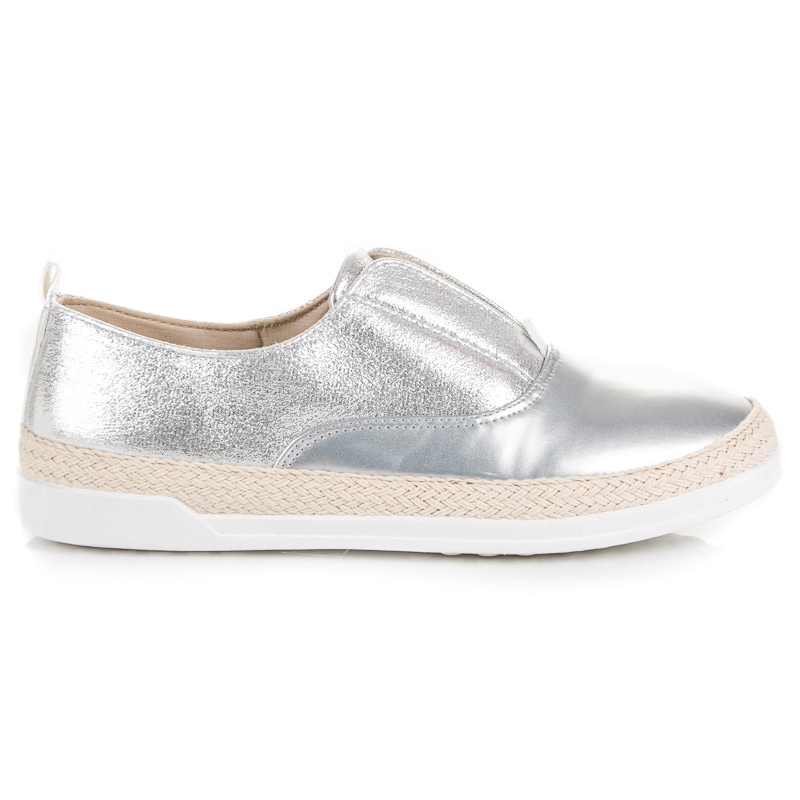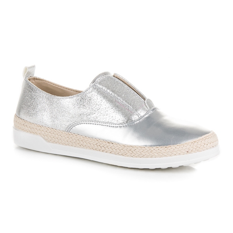 Srebrne Trampki Espadryle szare to niezwykle stylowe obuwie damskie, które z pewnością przyciągnie uwagę. Wykonane z wysokiej jakości tworzywa skóropodobnego, te trendy espadryle oferują wyjątkowy metaliczny połysk, dzięki czemu idealnie wpasują się w modowe (fashion) i casualowe stylizacje na co dzień.