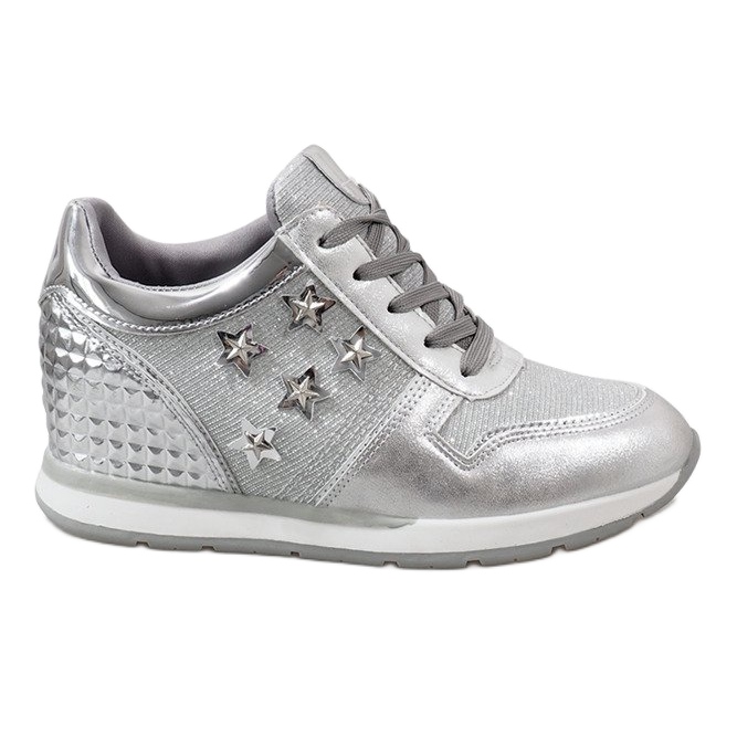 Szczegóły: Srebrne trampki na koturnie z gwiazdkami BM1915-3 srebrny