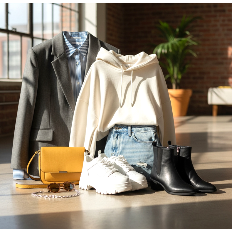 Kilka zlotych zasad na zakonczenie: po pierwsze, jesli gora jest luzna, dol powinien byc bardziej zdecydowany. Po drugie, odslaniaj kostki - to prosty trik, ktory dodaje lekkosci kazdej oversizowej stylizacji. Po trzecie, stawiaj na kontrast - kobiece szpilki z meska marynarka, delikatne baleriny z ciezka bluza, masywne glany z zwiewna sukienka.