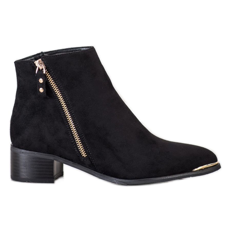 Szczegóły: Kayla Stylowe Botki Na Suwak czarne złoty
