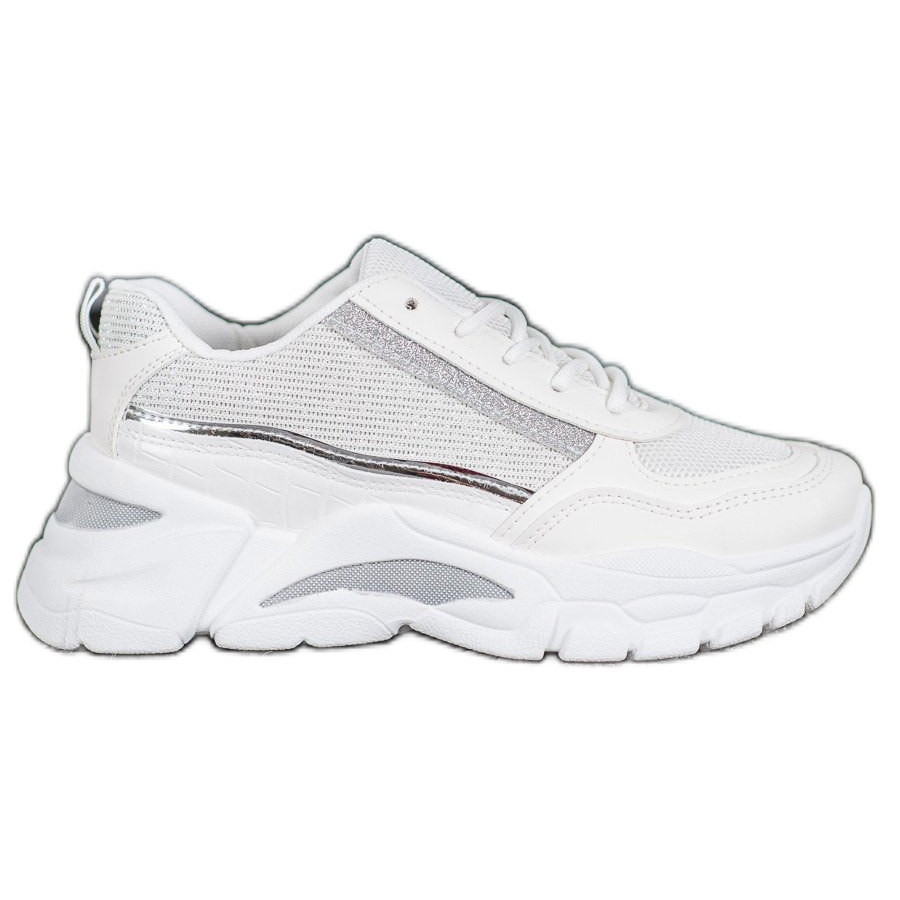 SHELOVET Stylowe Sneakersy Z Brokatem białe