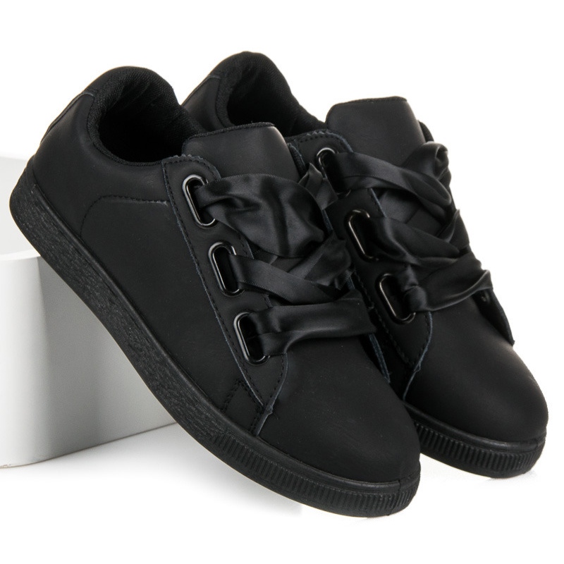 Szczegóły: Stylowe trampki ze wstążką czarne