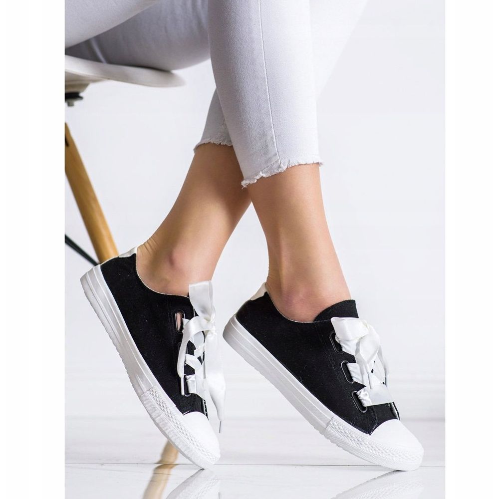 Szczegóły: SHELOVET Stylowe Wiązane Trampki czarne