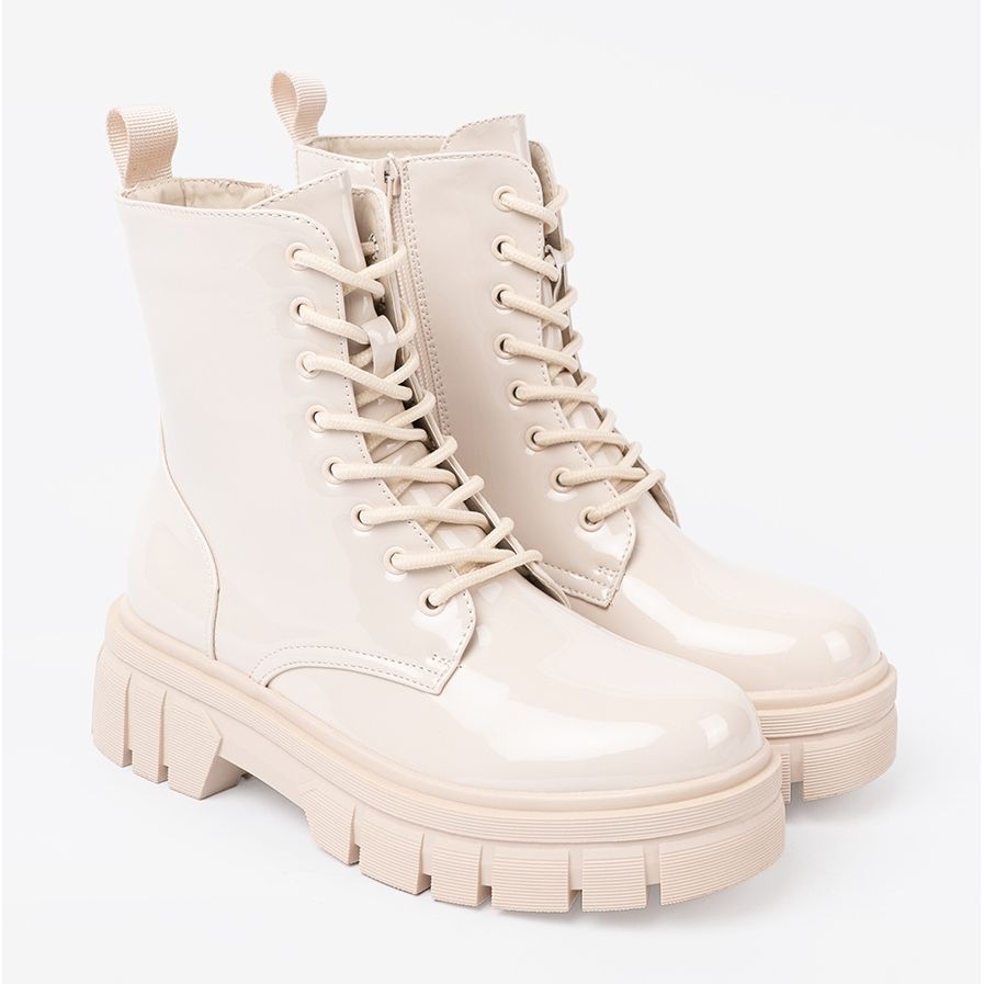 Shelvt Shelvt Stylowe workery lakierowane w odcieniu jasnobeżowym