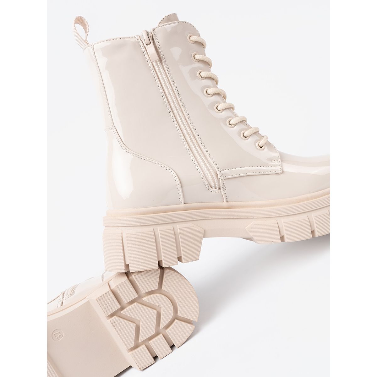 Szczegóły: Shelvt Stylowe workery lakierowane w odcieniu jasnobeżowym