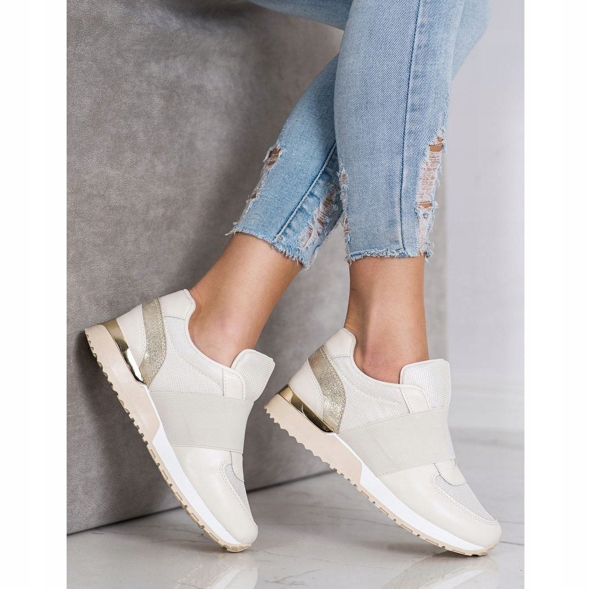 Szczegóły: SHELOVET Stylowe Wsuwane Sneakersy beżowy