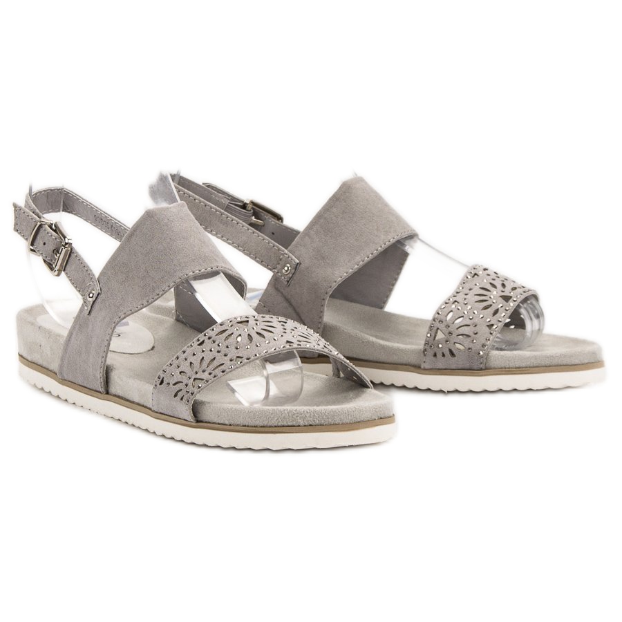 Wykonane z wysokiej jakości ekologicznej skóry zamszowej w modnym szarym kolorze, sandały te są nie tylko estetyczne, ale również przyjazne dla środowiska. Urok kryształków, które zdobią model, dodaje elegancji i sprawia, że z łatwością można zestawić je zarówno z codziennym, jak i bardziej formalnym strojem.