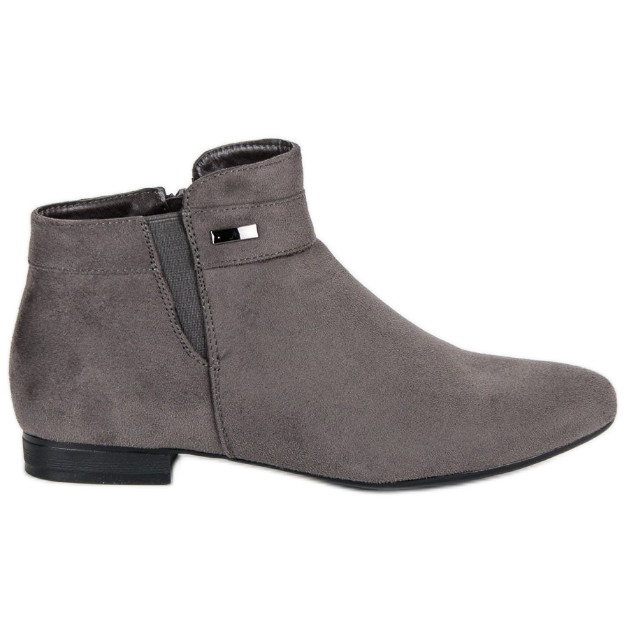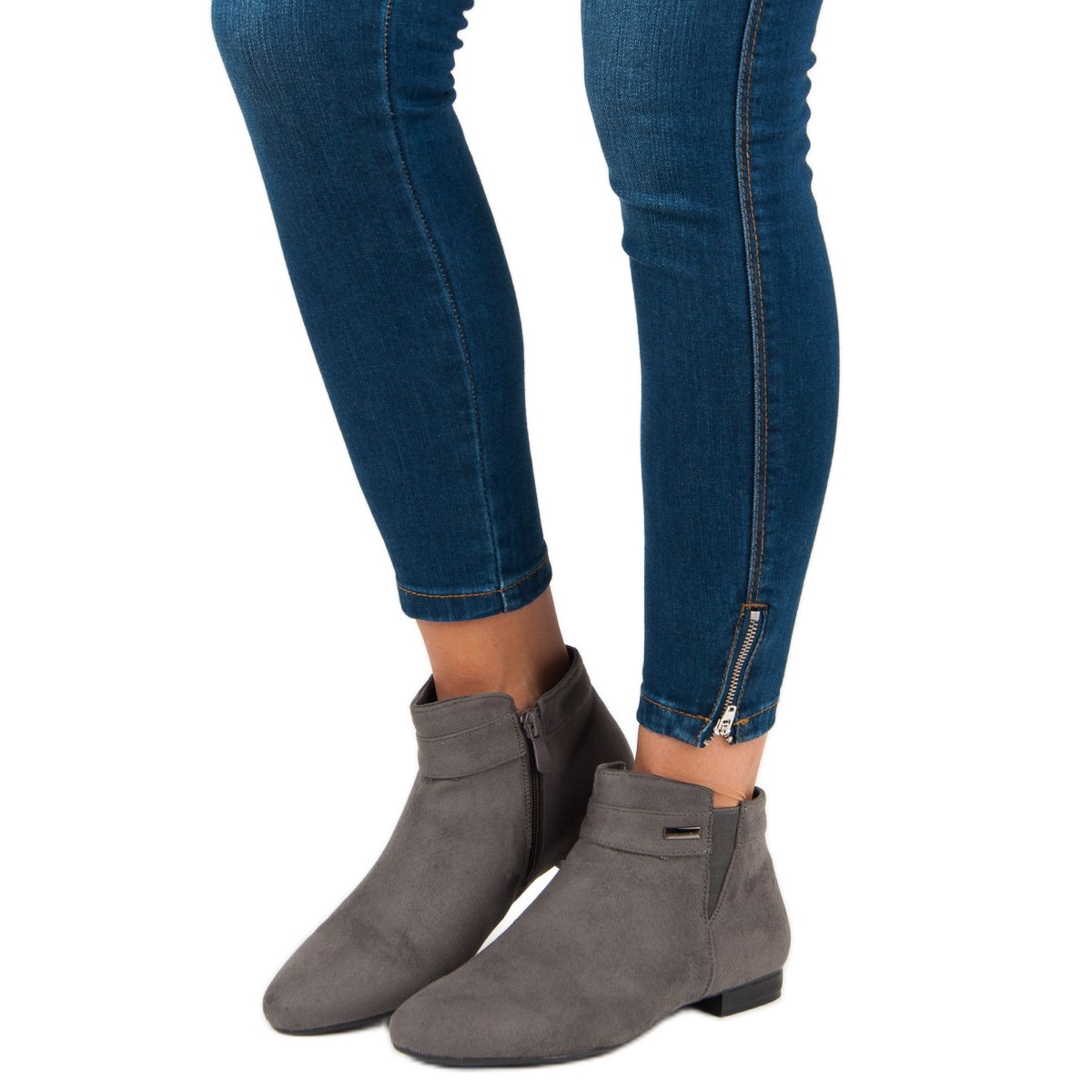 Zapięcie na zamek ułatwia zakładanie i zdejmowanie, a solidna podeszwa z syntetyku zapewnia odpowiednią przyczepność na różnych nawierzchniach. Botki sięgające za kostkę w kolorze szarym to doskonała baza do wielu outfitów – od casualowych po bardziej eleganckie.