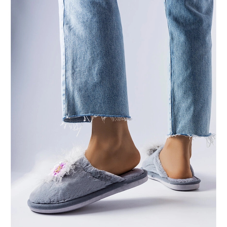 Szczegóły: Szare ciepłe kapcie z kwiatkami Moly