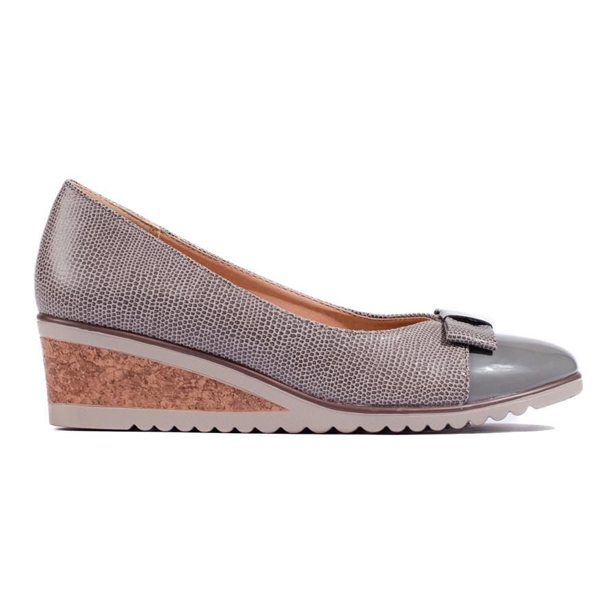W. Potocki W. Potocki Szare czółenka damskie Potocki na niskiej koturnie