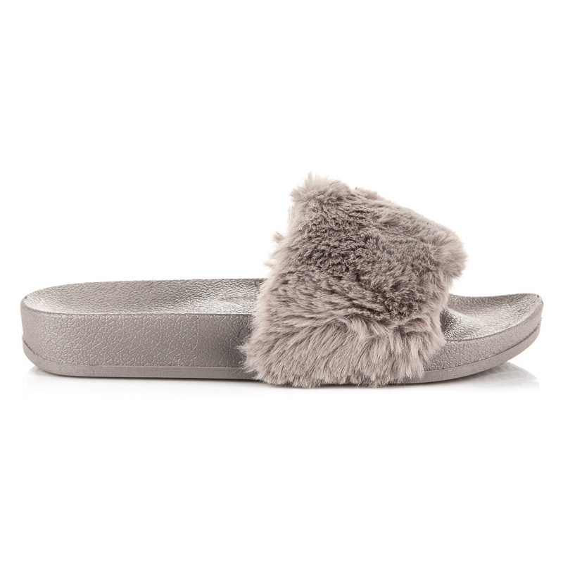 Via Giulia Via Giulia Szare Klapki Z Futerkiem