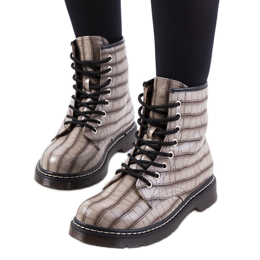Odkryj idealne połączenie stylu i wygody dzięki szarym traperkom damskim Norte! Ten model botków to prawdziwy hit nadchodzącej jesieni, stylizowany na modne glany, co nadaje mu oryginalnego charakteru i wyjątkowego wyrazu. Wykonane z wysokiej jakości skóry ekologicznej, z delikatną strukturą krokodyla, te buty nie tylko świetnie wyglądają, ale także są przyjazne dla środowiska.