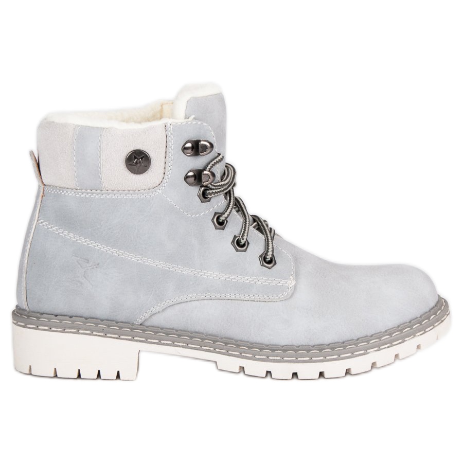 Niebanalne detale, takie jak zamszowe wstawki oraz ciemne sznurówki, dodają tym traperkom charakteru. Doskonale komponują się z różnymi stylizacjami, od casualowych po bardziej eleganckie. Niezwykła uniwersalność koloru szarego sprawia, że te buty pasują do wielu zimowych outfitów.