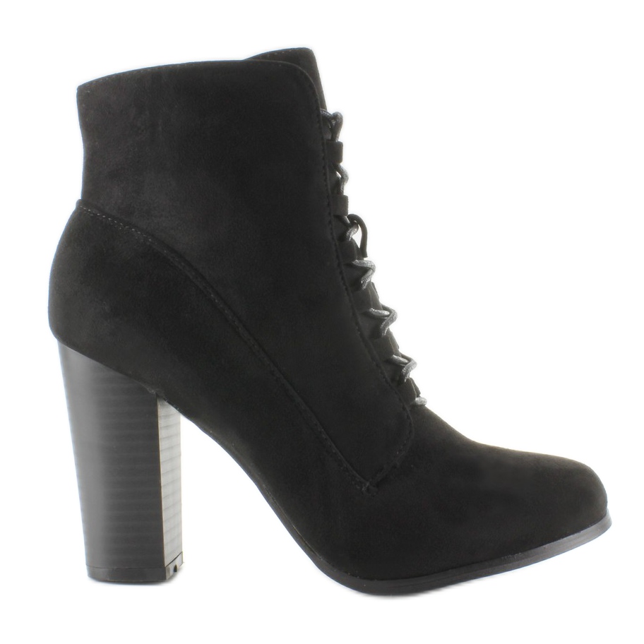 Szczegóły: Sznurowane botki na obcasie 66-202 Black czarne