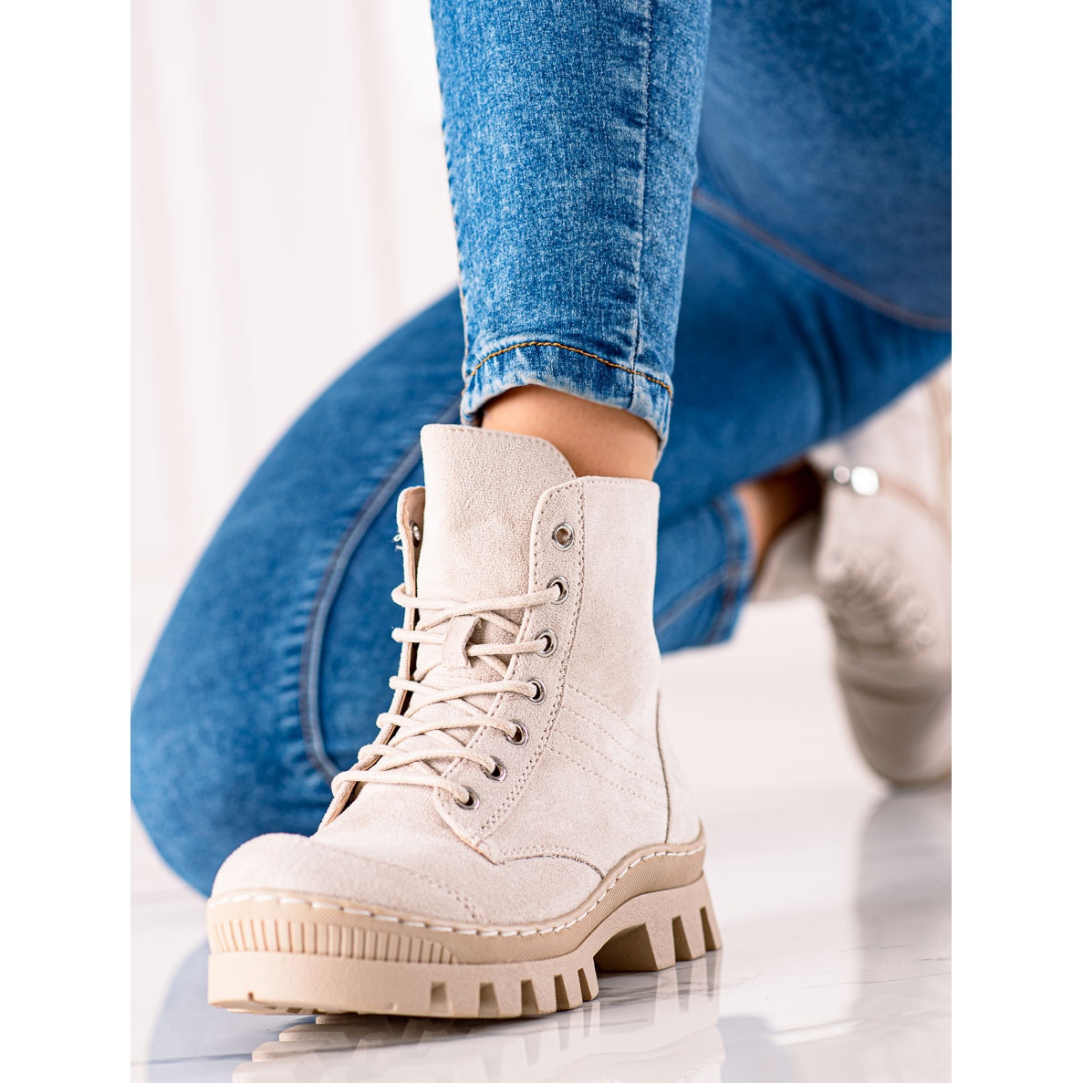Odkryj wygodę i styl z botkami od S. BARSKI w odcieniu beżowym! Te sznurowane botki to idealne obuwie na co dzień, które doskonale sprawdzi się w sezonie jesienno-zimowym. Wykonane z wysokiej jakości imitacji zamszu, zapewniają elegancki wygląd oraz komfort noszenia.