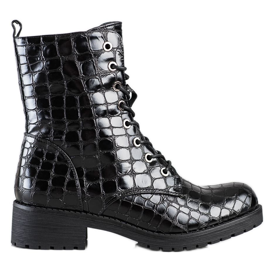 Szczegóły: SHELOVET Sznurowane Botki Trapery czarne