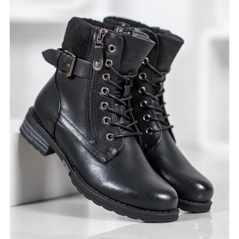 J. Star J. Star Sznurowane Botki Z Eko Skóry czarne