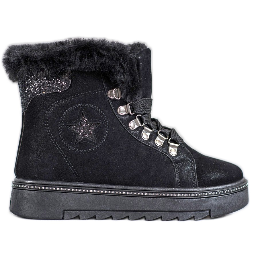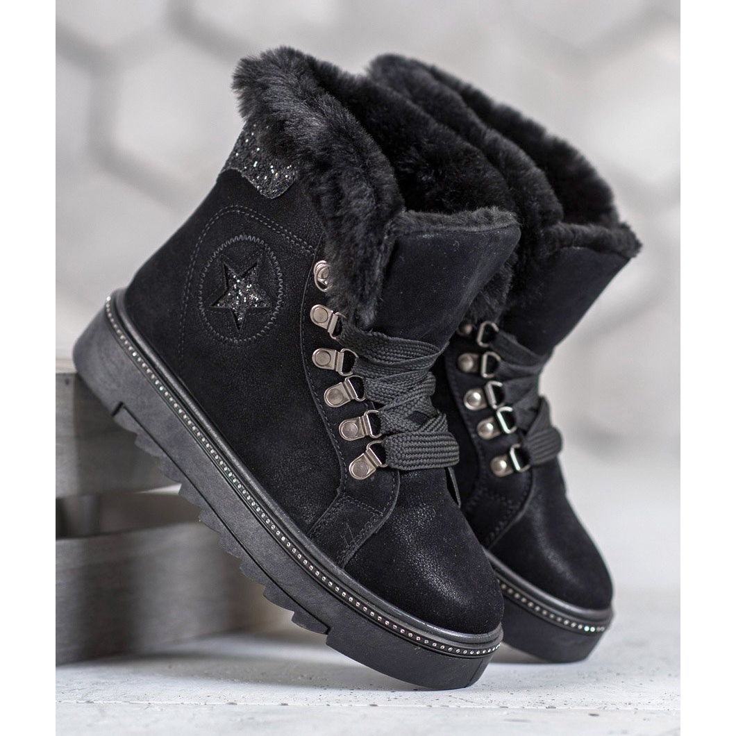 SHELOVET Sznurowane Czarne Botki - Elegancja w Zimowym Wydaniu