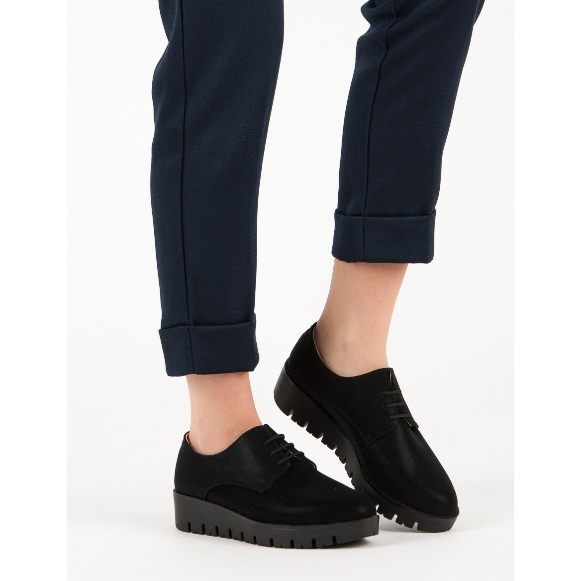 Czarny kolor tych półbutów sprawia, że są one niezwykle uniwersalne — świetnie sprawdzą się zarówno w zestawieniach casualowych, jak i bardziej eleganckich. Brak wzorów podkreśla ich minimalistyczny charakter, co czyni je idealnym wyborem do wielu różnych stylizacji.