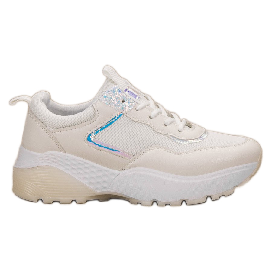 Odkryj idealne połączenie wygody i stylu z białymi sznurowanymi sneakersami SHELOVET. Te modowe buty, dzięki niedużej platformie o wysokości 5 cm, doskonale modelują nogi, sprawiając, że wyglądają one smuklej i bardziej elegancko. Brokatowe akcenty wprowadzają do każdej stylizacji nutkę szyku, co czyni ten model odpowiednim zarówno na co dzień, jak i do sportowych outfitów.