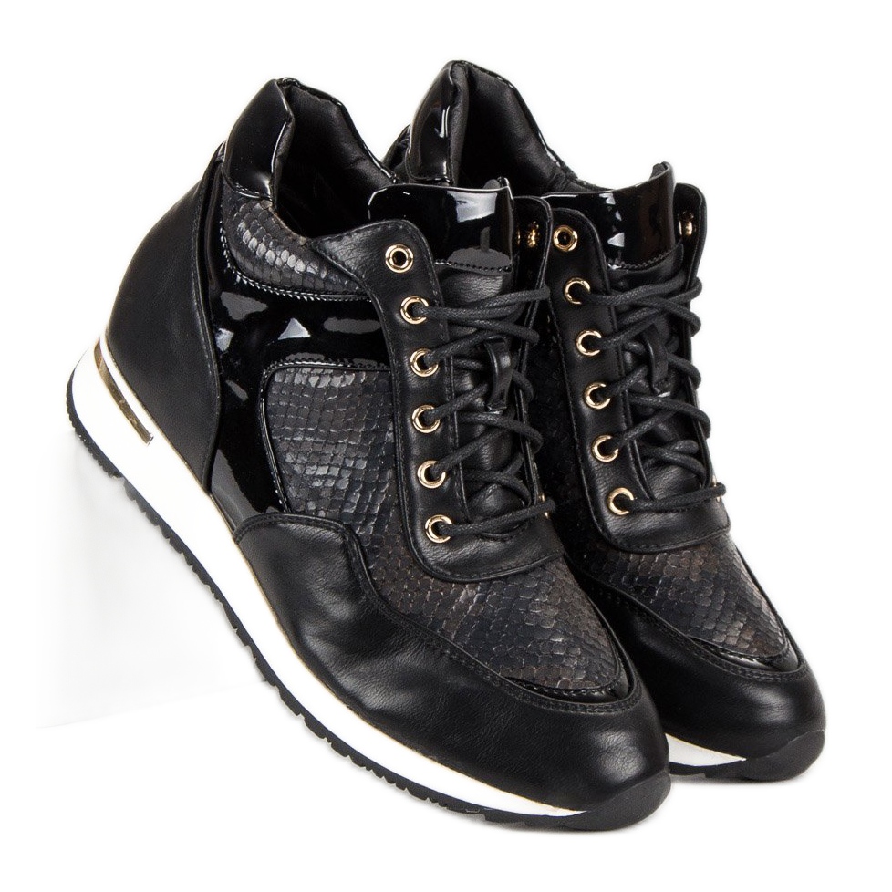 Wysokie trampki charakteryzują się okrągłym noskiem, co dodaje im uniwersalnego charakteru, pasującego do wielu stylizacji – zarówno casualowych, jak i bardziej eleganckich. Czarny kolor sprawia, że są niezwykle uniwersalne i łatwo je zestawić z innymi elementami garderoby.