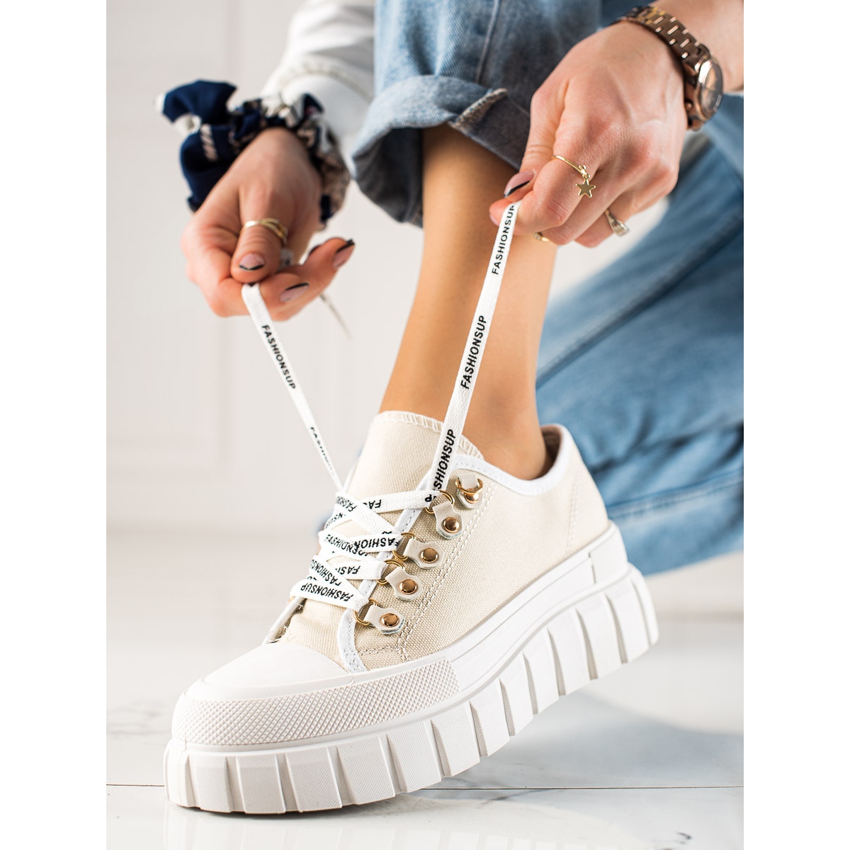 TRENDI TRENDI Sznurowane Trampki Na Platformie beżowy