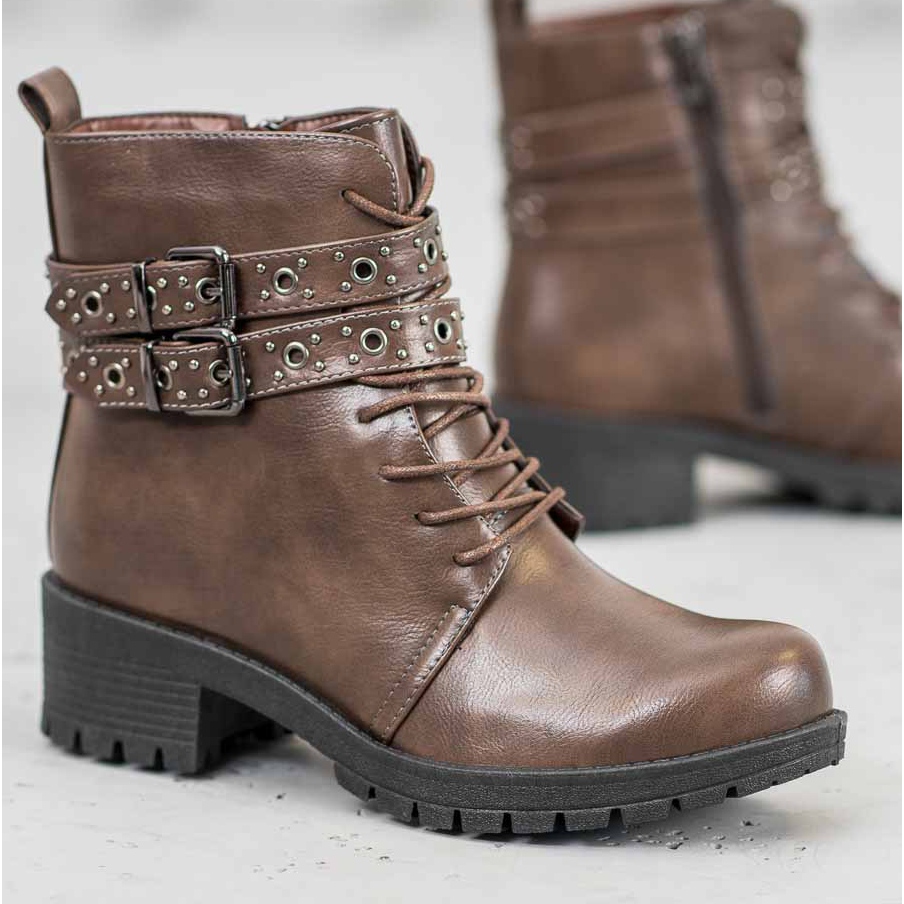 Szczegóły: SHELOVET Sznurowane Workery brązowe