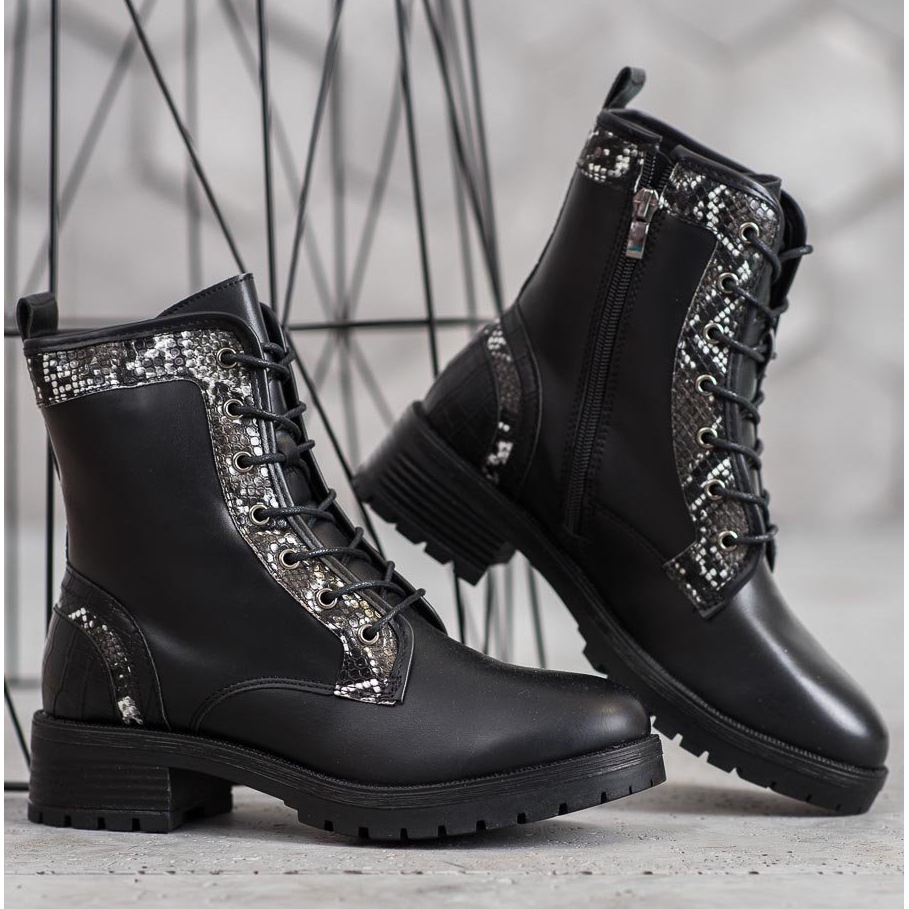 Seastar Seastar Sznurowane Workery Snake Print czarne