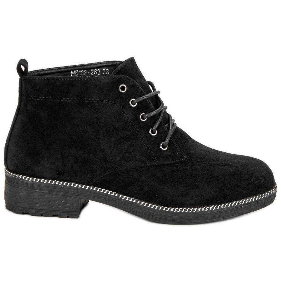 **Nio Nio Sznurowane Zamszowe Botki Czarne**