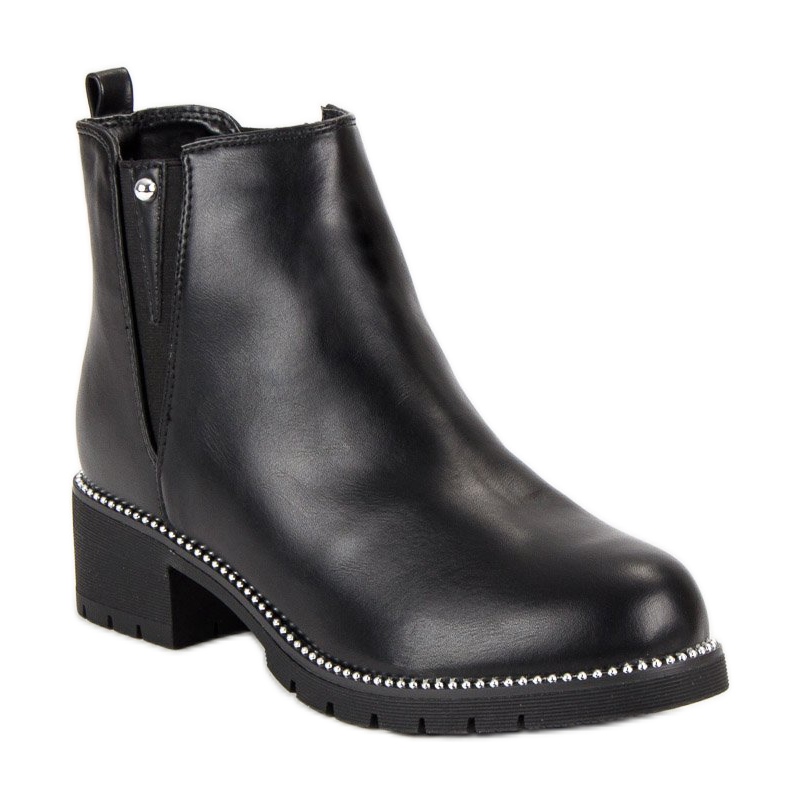 Odkryj elegancję i komfort w codziennych stylizacjach z sztybletami VICES w kolorze czarnym. Te wyjątkowe buty, wykonane z wysokiej jakości skóry ekologicznej, łączą w sobie klasyczny design z nowoczesnymi detalami, takimi jak delikatne zdobienia wokół podeszwy. Ich oryginalność podkreślają dżety, które dodają rockowego charakteru.