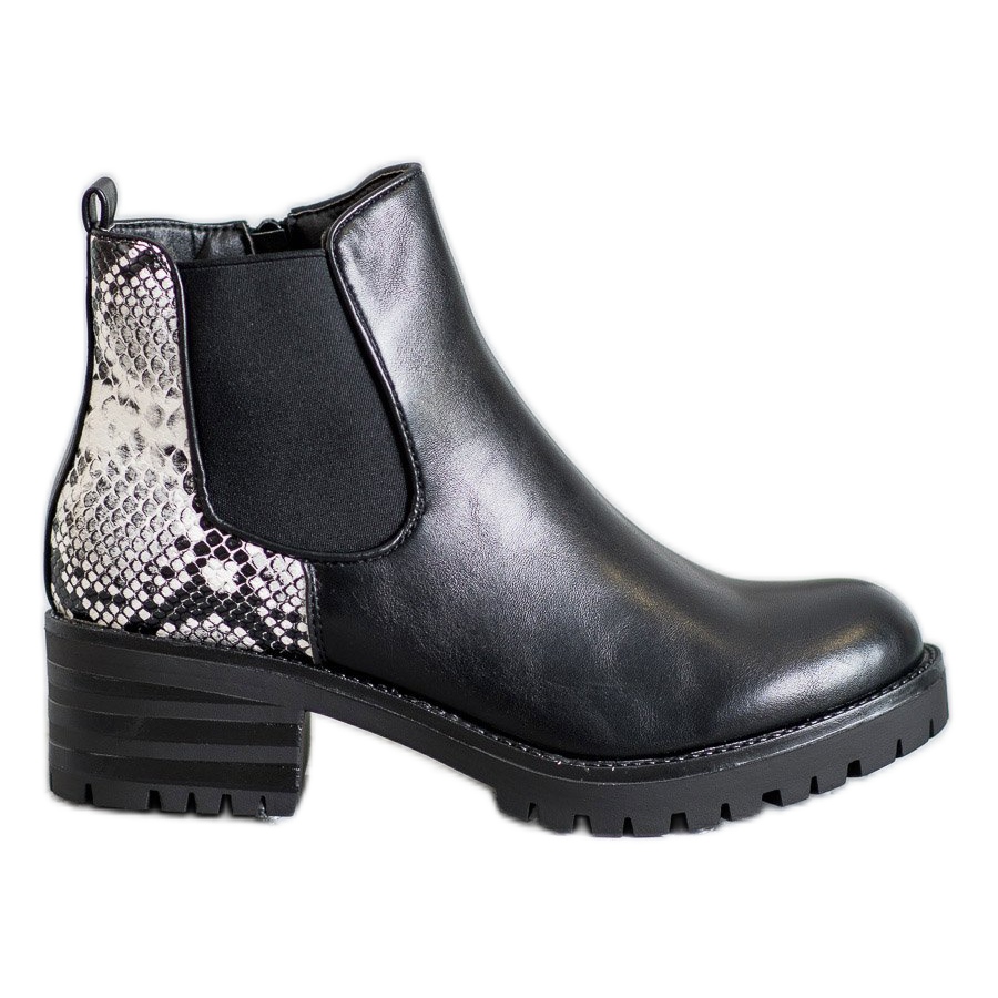 Botki Seastar Sztyblety Ze Wzorem to doskonały wybór dla kobiet, które cenią sobie zarówno styl, jak i wygodę. Te eleganckie buty w klasycznym czarnym kolorze od przodu stają się prawdziwym modowym hitem dzięki oryginalnemu tyłowi ozdobionemu motywem skóry węża. Dodatkowo, cholewki sięgające za kostkę oraz praktyczna wstawka z czarnej gumki zapewniają komfort noszenia i łatwe zakładanie.